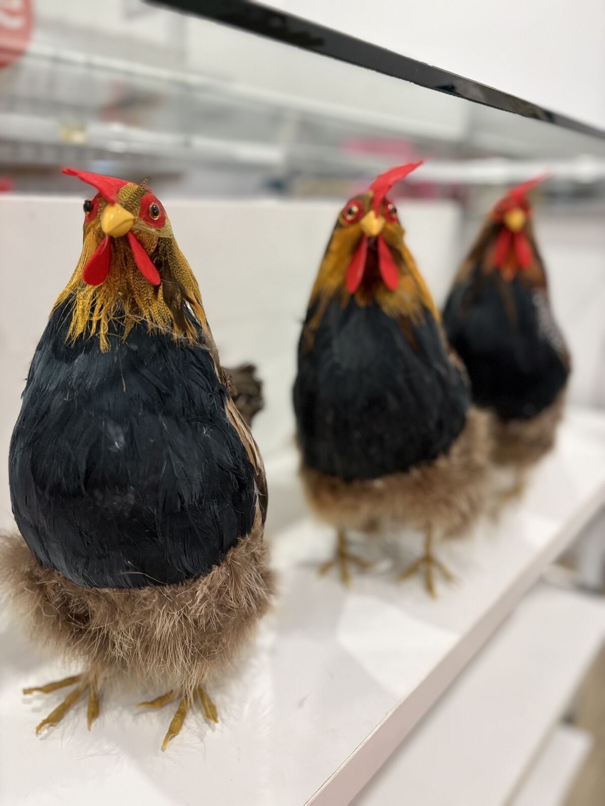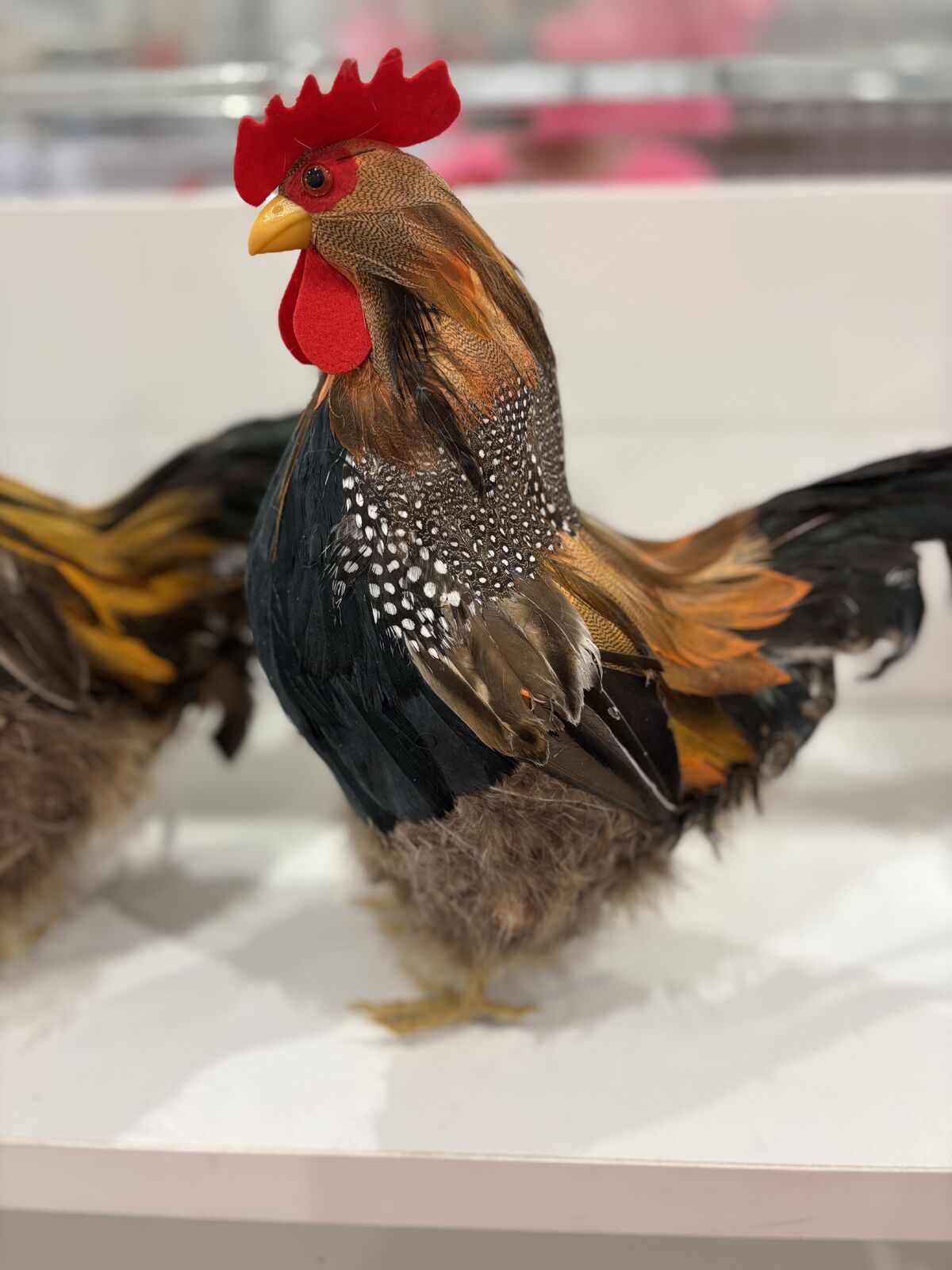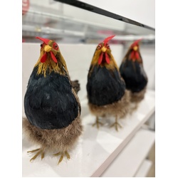 Realistic rooster with real feathers. Size:28 cm H x 25 length